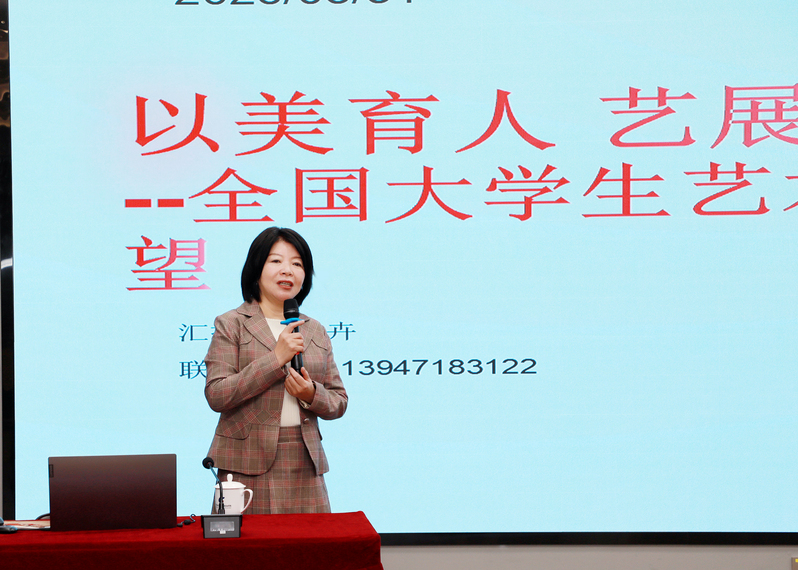 教育部职业院校文化素质教指委美育专委会委员、内蒙古师范大学张卉教授结合大学生艺术展演,以“以美育人艺展未来——全国大学生艺术展演回顾与展望”为主题展开分享,重点解读未来大艺展参赛准备要点,鼓励各院校提前谋划、深度挖掘校内育人潜力。