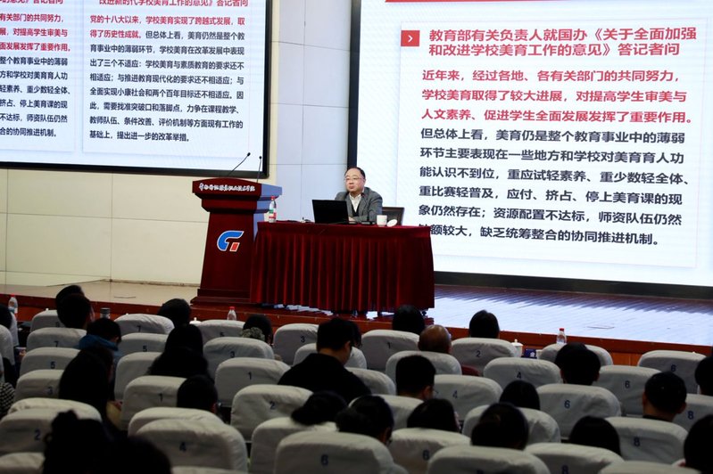 黄璞副研究员在发言中强调,美育是党的教育方针的重要组成部分,是落实立德树人根本任务的核心途径,更是提升学生审美素养、人文素养与创新素养的关键抓手。近年来,党中央、教育部围绕美育工作作出一系列重要部署,明确要求将美育贯穿人才培养全过程,开齐开足上好艺术课程,助力学生全面发展。针对职业院校美育工作推进,她提出三点要求:一是坚守育人初心,始终将立德树人贯穿美育教学全过程,锚定育人目标不偏移;二是牢固树立“健康第一”理念,兼顾学生审美培养与身心健康,促进学生全面发展;三是立足职教特色,推动美育与专业教学、实践育人深度融合,打造具有职业教育辨识度的美育模式。同时,她鼓励各职业院校积极运用大数据、人工智能、虚拟现实等新技术赋能美育教学,推动教学内容更生动、教学方式更多元、艺术体验更丰富、评价反馈更科学,以本次备课会为契机,健全美育教研交流机制,凝聚美育教师、专业课教师、思政教师协同育人合力,营造全方位育人的良好氛围。
