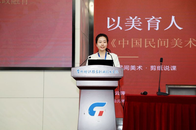 下午,美育课程说课与展示环节精彩上演。来自全国多所职业院校的6位教师代表依次登台,分享优质美育课程成果,展现各具特色的美育教学模式。山东轻工职业学校李红霞带来《以寻脉启审美、以造物见初心——非遗技艺的服饰配饰》,将非遗技艺与服饰美育深度融合;常州纺织服装职业技术学院人文学院尤霄分享《玩转音乐》,以趣味化教学激活音乐美育活力;广东轻工职业大学齐蒙讲解《东方美学在产品设计中的应用》,立足专业特色挖掘美育内涵;湖北幼儿师范高等专科学校洪甘云萍分享《以美育人向美而生——〈中国民间美术〉课程中的美育浸润与思政融育》,分享了将美育与思政融合的实践经验;江西现代职业技术学院邱丹带来《以美润心,以行践知——高职美育“理论+实践”双轨育人模式探索》,创新美育育人模式;常州工程职业技术学院周一鸣分享《南田写生——没骨画教学与实践》,传承传统书画美育精髓。各课程展示内容丰富、亮点纷呈,充分展现了职业院校美育课程创新的丰硕成果。
