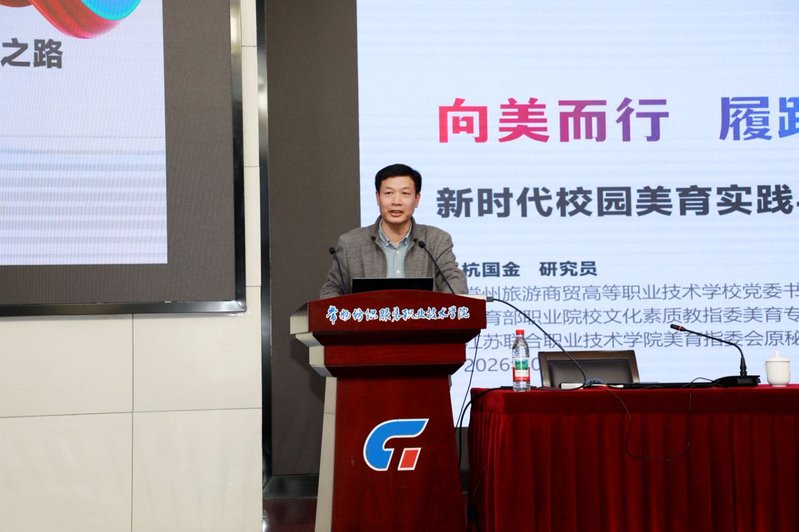 开幕式后,专家论坛环节在沈洁霞副主任委员的主持下有序开展。多位专家结合自身研究与实践成果,带来精彩专题报告,为职业院校美育高质量发展提供理论指引与实践参考。吴磊教授以《从政策到实践:在“浸润”中推动江苏学校美育高质量发展》为题,解读美育政策落地路径,分享区域美育实践经验;常州纺织服装职业技术学院院长洪霄作《以衣载道、三全育美、以美赋能——常州纺院美育体系构建与实践》报告,展现学校依托纺织服装专业特色,构建全方位美育育人体系的创新实践;教育部文化素质教指委美育专委会委员、常州旅游商贸高等职业技术学校党委书记杭国金以《向美而行、履践致远——新时代校园美育实践与教材开发的共生之路》为题,探讨校园美育落地与教材建设的融合发展路径。