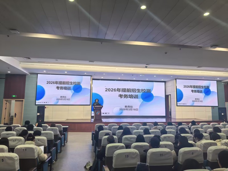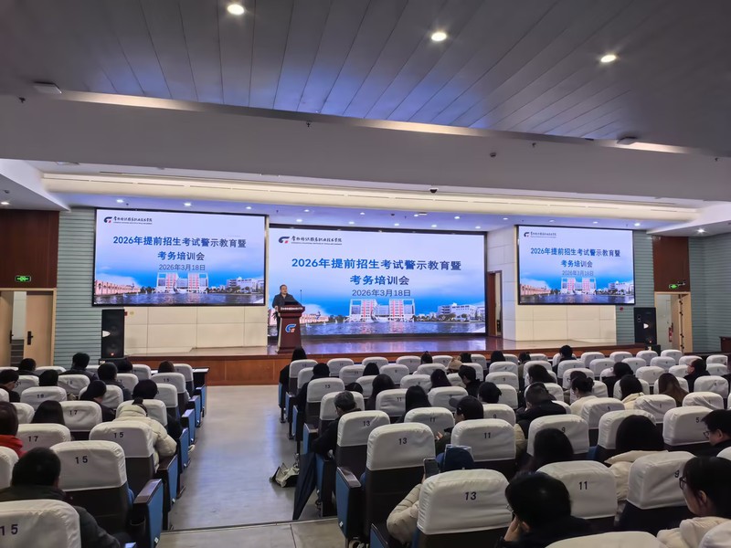 为严肃考风考纪、规范考务流程,确保2026年提前招生校测工作公平公正、安全有序开展,3月18日下午,我校在图文报告厅召开“2026提前招生考试警示教育暨考务培训会”。全体监考教师、考务工作人员参加会议。