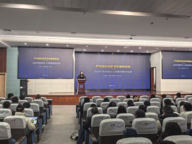 会议由教务处副处长于俊主持。招就处处长高妍首先作题为“严守招生纪律,筑牢廉政防线”的2026提前招生廉政教育培训。她结合近年来招生考试领域的典型案例,深入剖析廉政风险点,强调全体工作人员必须严守招生纪律“红线”,强化廉洁自律意识,坚决杜绝任何违规违纪行为,以高度的政治责任感维护招生考试的严肃性与公信力。